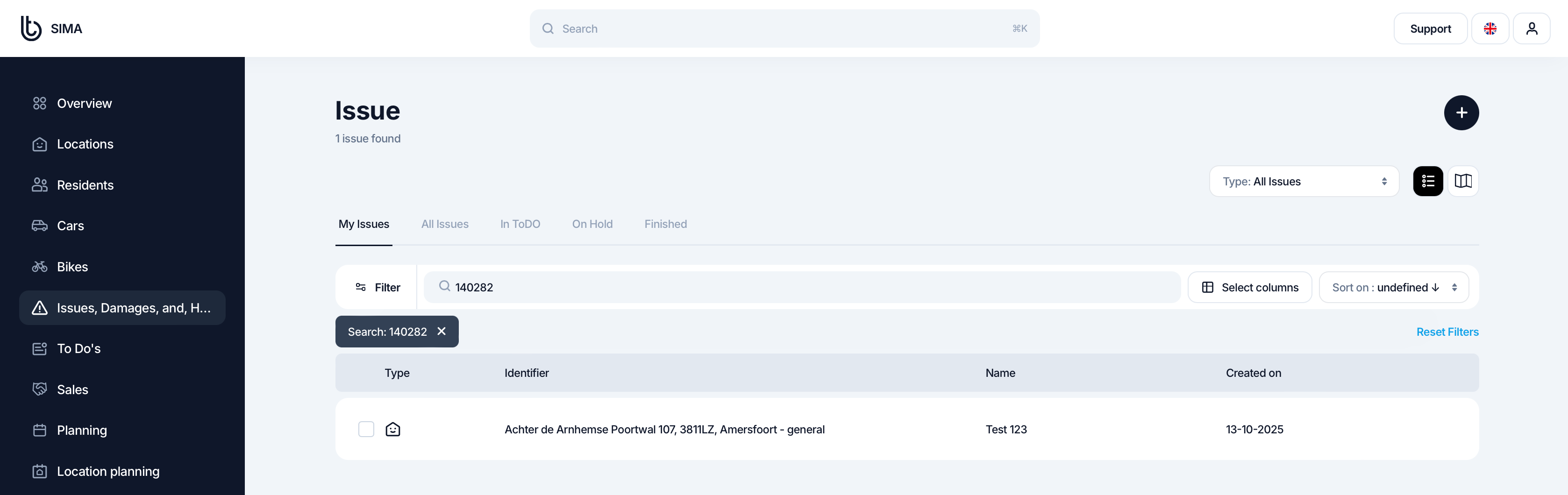 In SIMA, each tile already has its own search bar, and there is also a global search bar that can search across the entire platform. We have added a new feature to these search bars: you can now search by ID. This refers to the SIMA ID, the unique number automatically assigned to every item in SIMA upon creation.