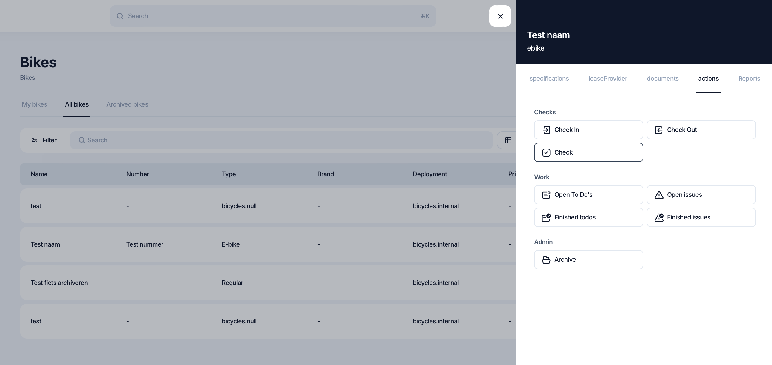 It is now possible to perform check-in, check-out, and periodic inspections for bicycles. This functionality was already available for cars, and it has now been added for bicycles as well. The inspections work exactly the same way as they do for locations and cars.