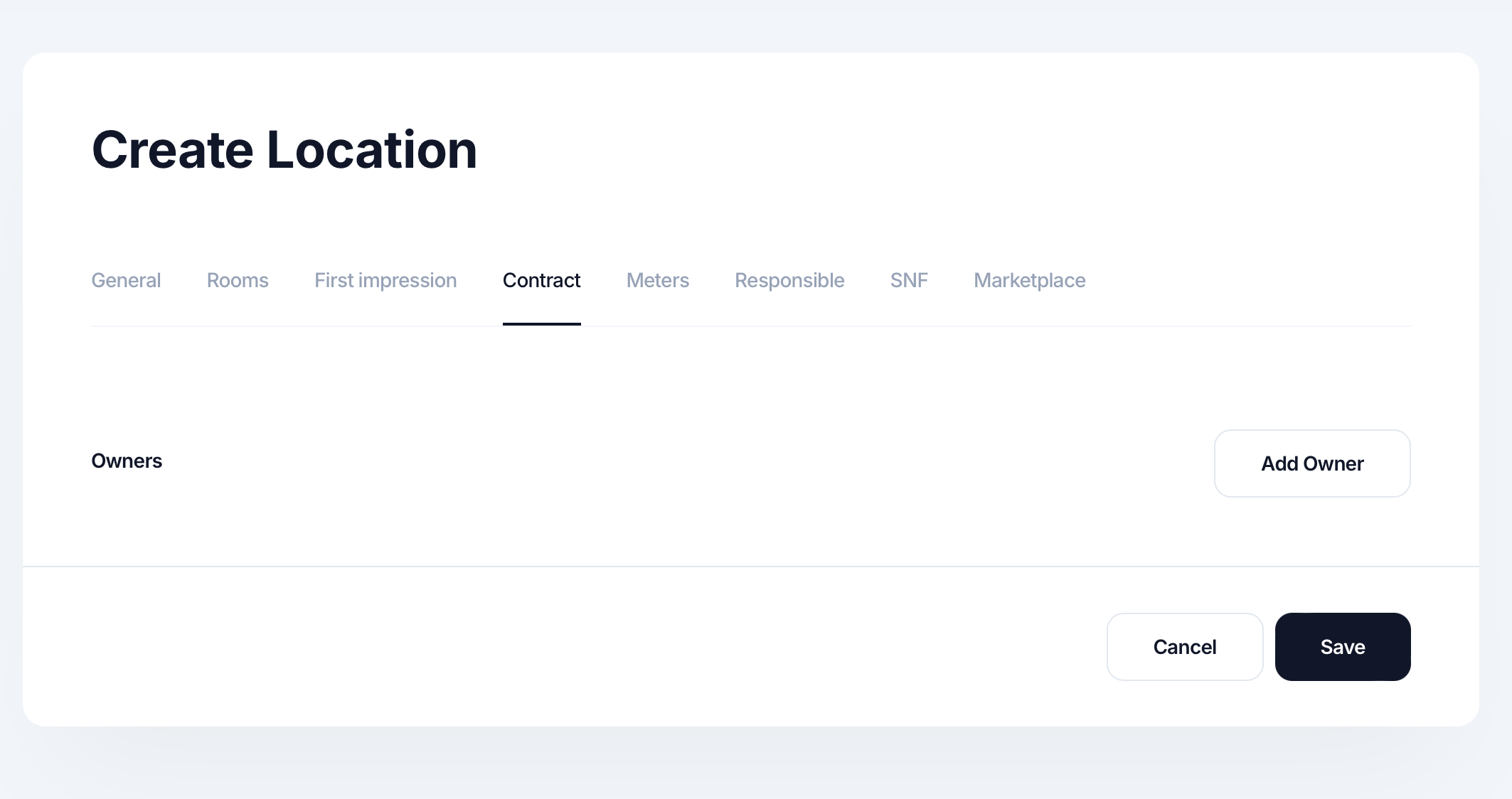 Als je klikt op de knop add owner / contract toevoegen, kan je een nieuw contract toevoegen. Het volgende formulier opent.
