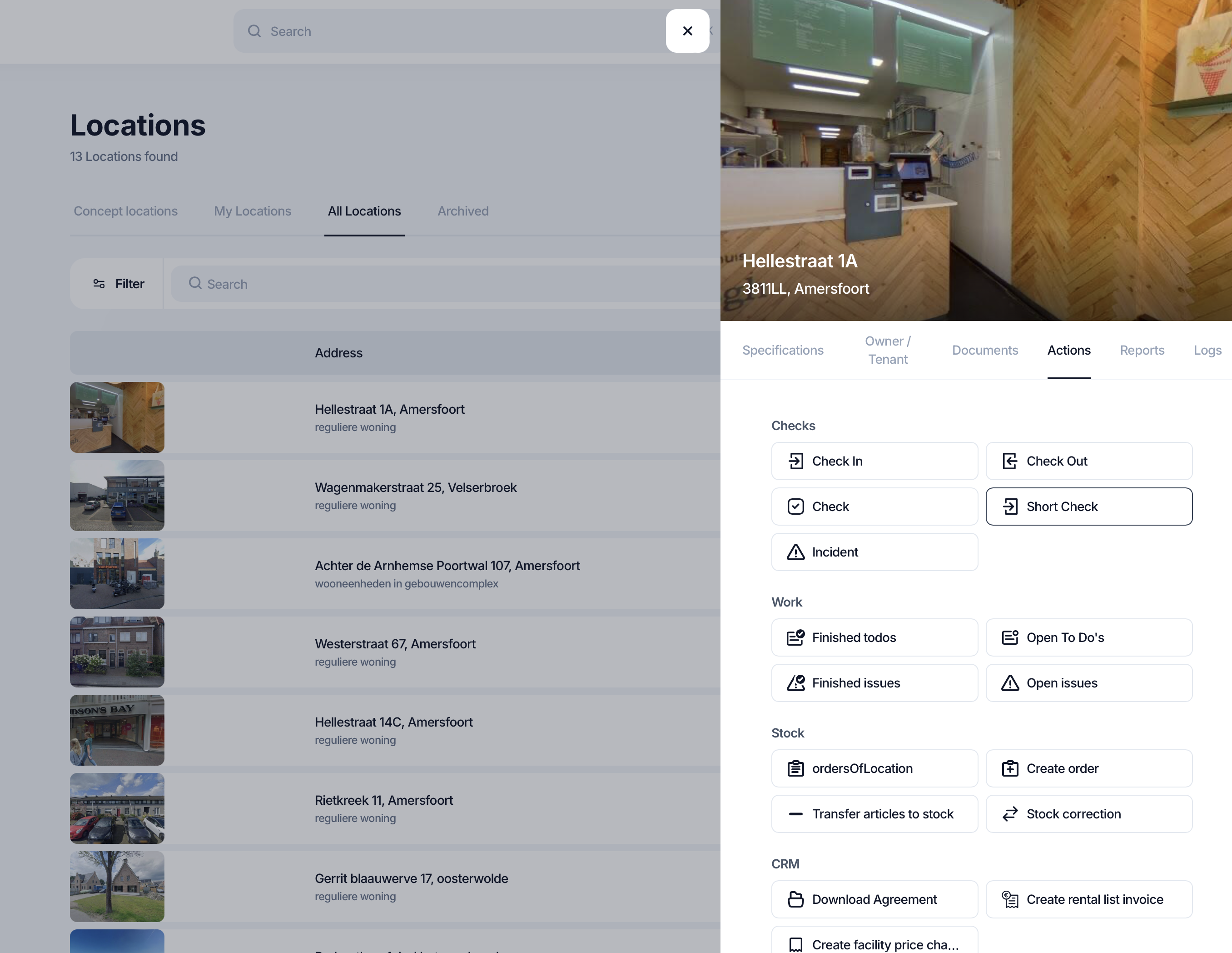 Je kunt ook de reeds afgeronde To Do's van een locatie inzien. Hiervoor ga je eerst naar het locatie overzicht en vervolgens naar Locatie acties.