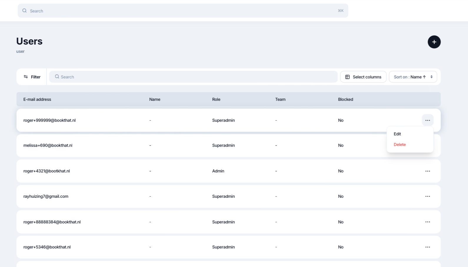 Hierna opent het huidige gebruikersoverzicht. Wil je de informatie van een gebruiker aanpassen , klik dan op de drie puntjes naast een gebruiker.